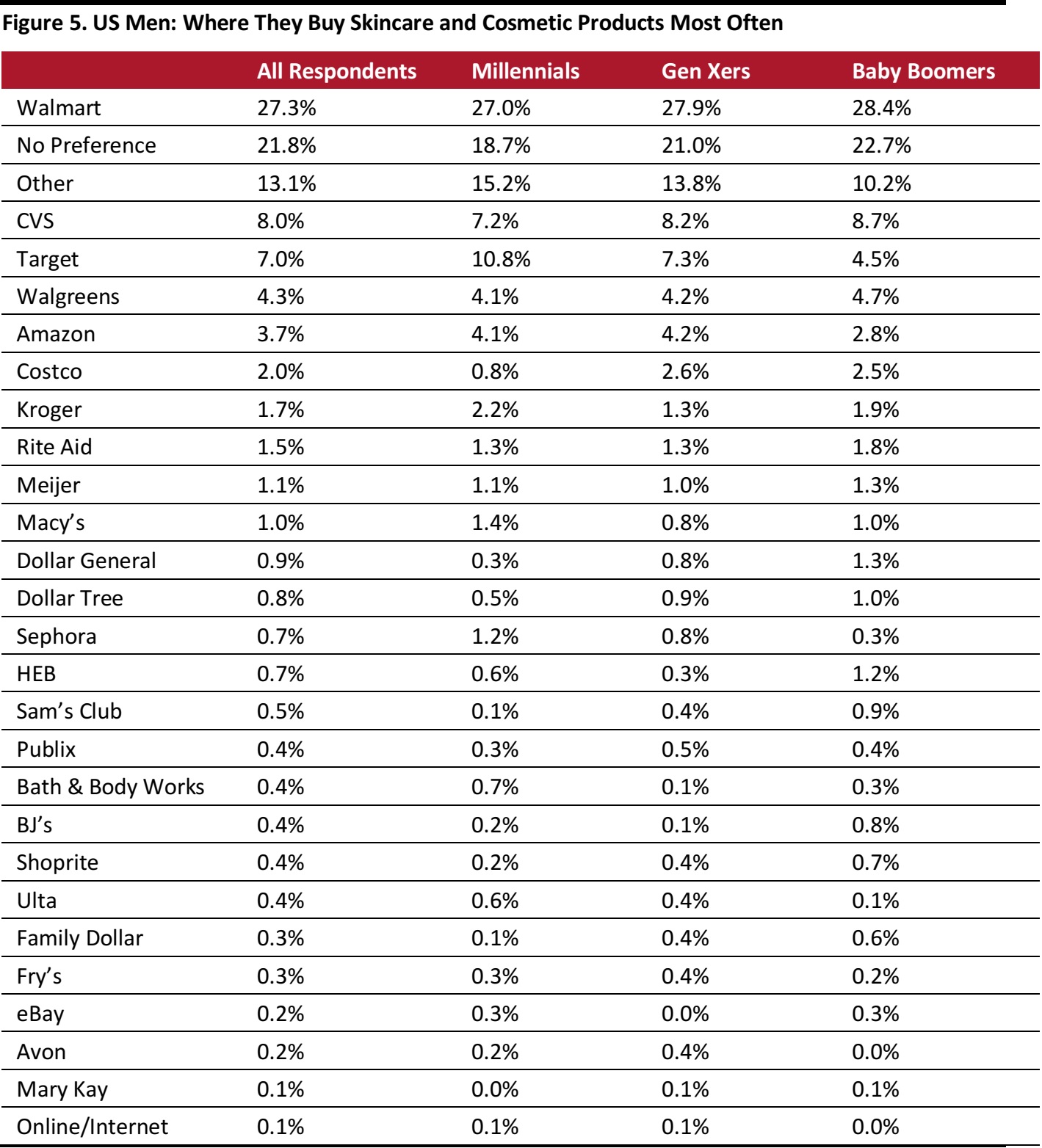 More than a Quarter of American Men Shop Most Often at Walmart for Skincare and Cosmetic Products
